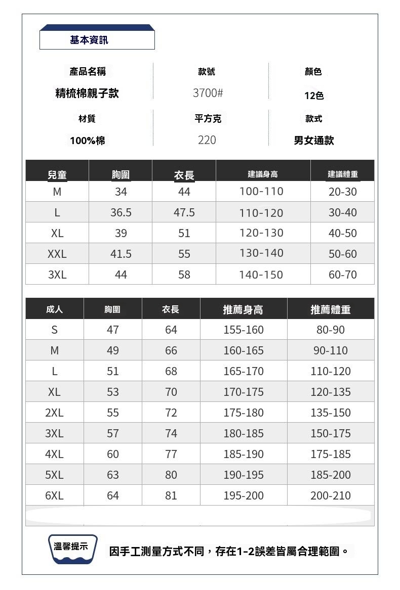 LJ176落肩多色多碼純棉圓領短袖3700親子裝